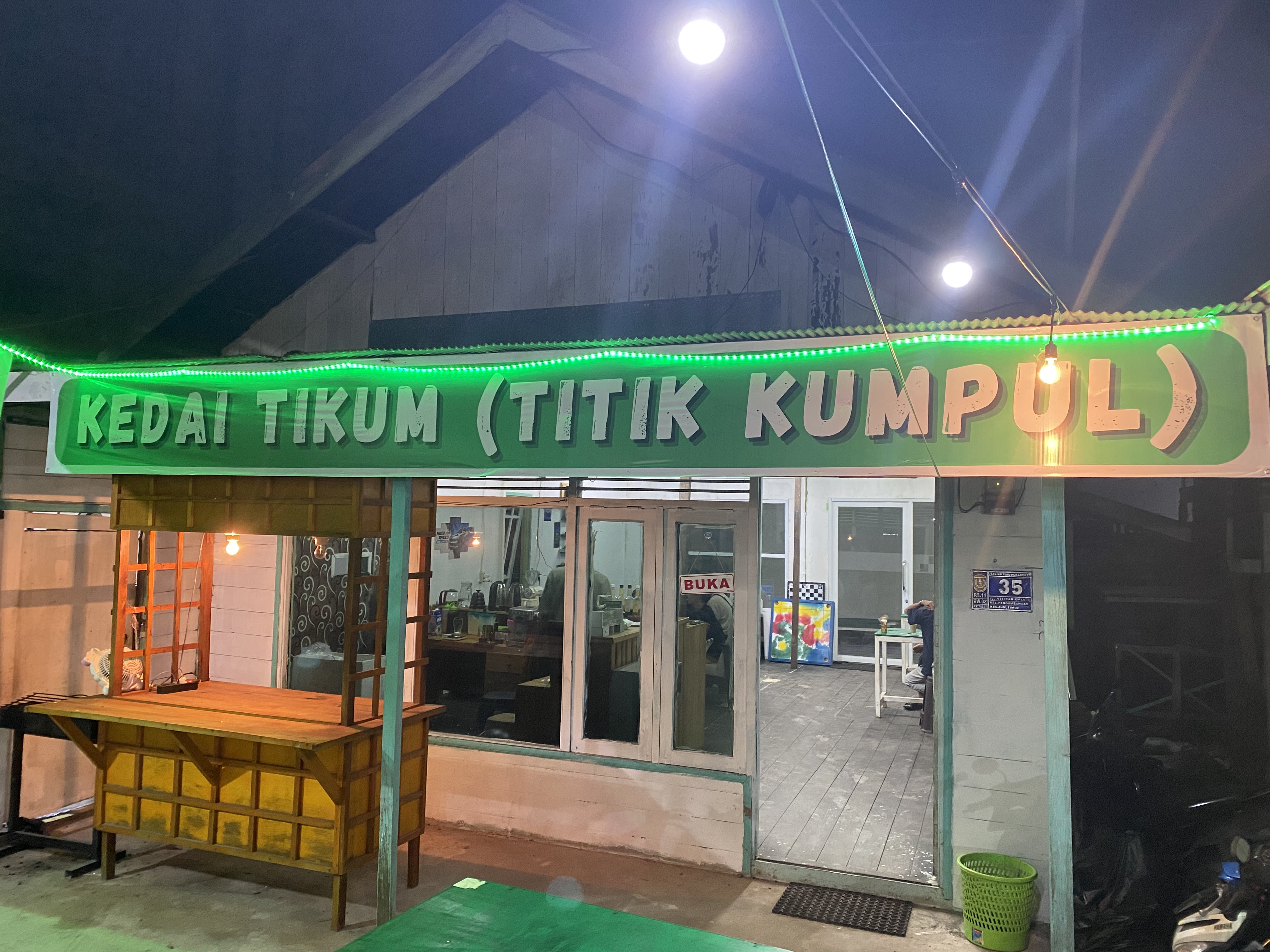 Terletak di Jalan Veteran, Kelurahan Pengambangan, Banjarmasin Timur, Kedai Tikum atau singkatan dari Titik Kumpul hadir menawarkan konsep nongkrong yang berbeda.